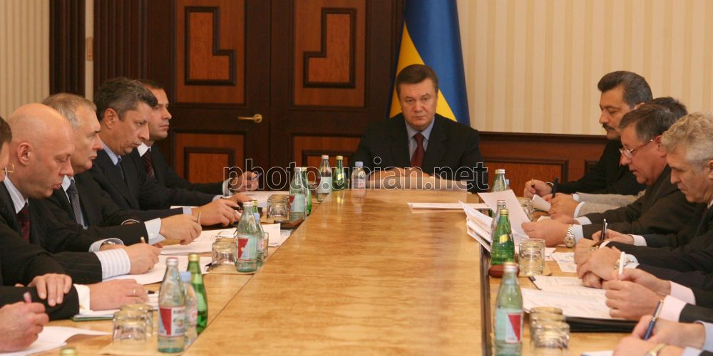 Прем’єр-міністр України Віктор Янукович під час засідання в Кабінеті Міністрів роз’яснює, що Україна визначиться з можливістю висунення претензій до Росії з приводу аварії, що спричинила екологічні наслідки в Керченській протоці, після отримання результатів технічної експертизи, в Києві у понеділок, 12 листопада 2007 р. Фото УНІАН
